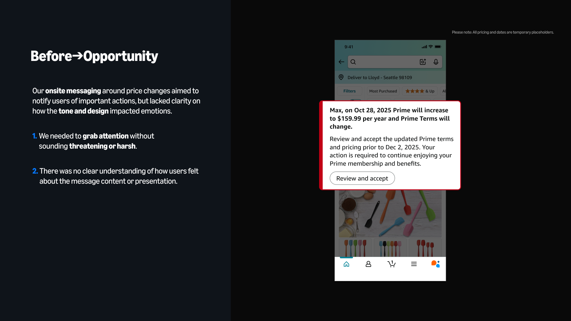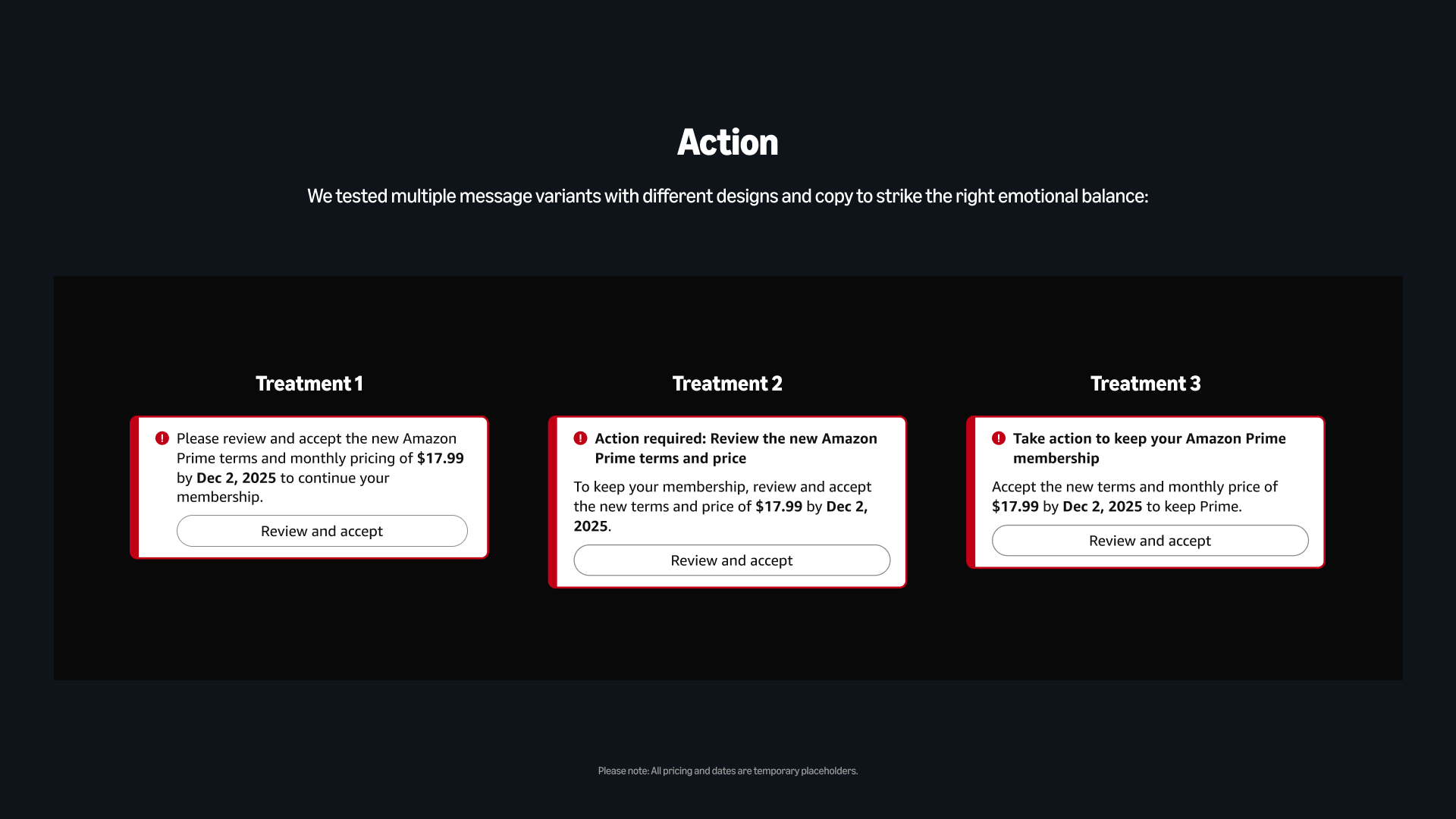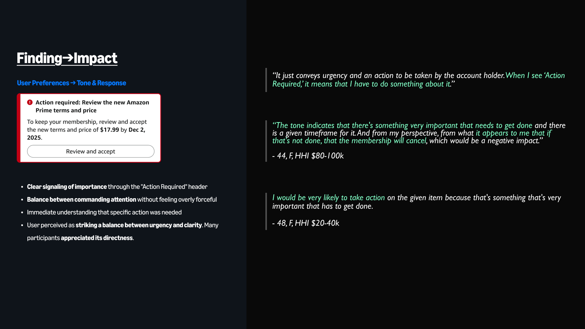 • We must find a context-appropriate tone that communicates the urgency of the action without alarming customers as to the state of their Prime membership