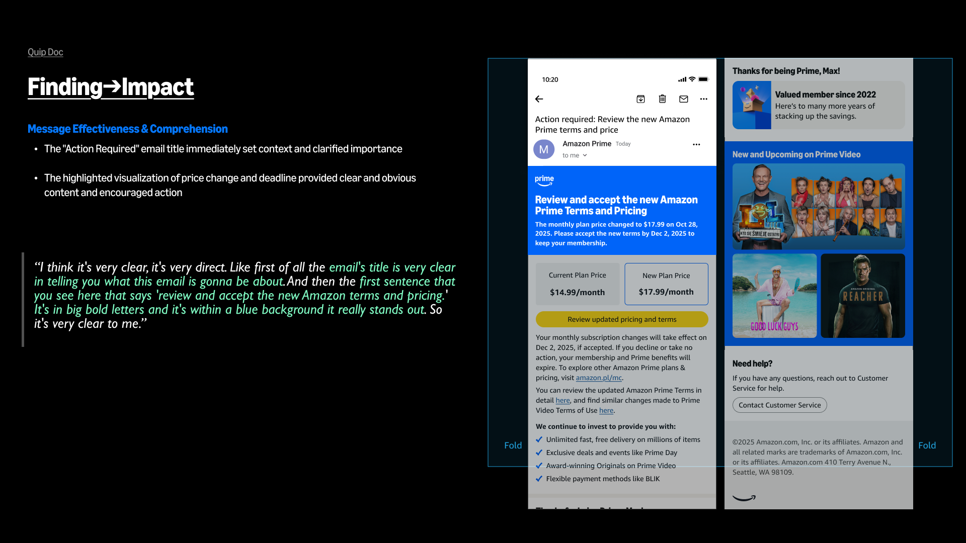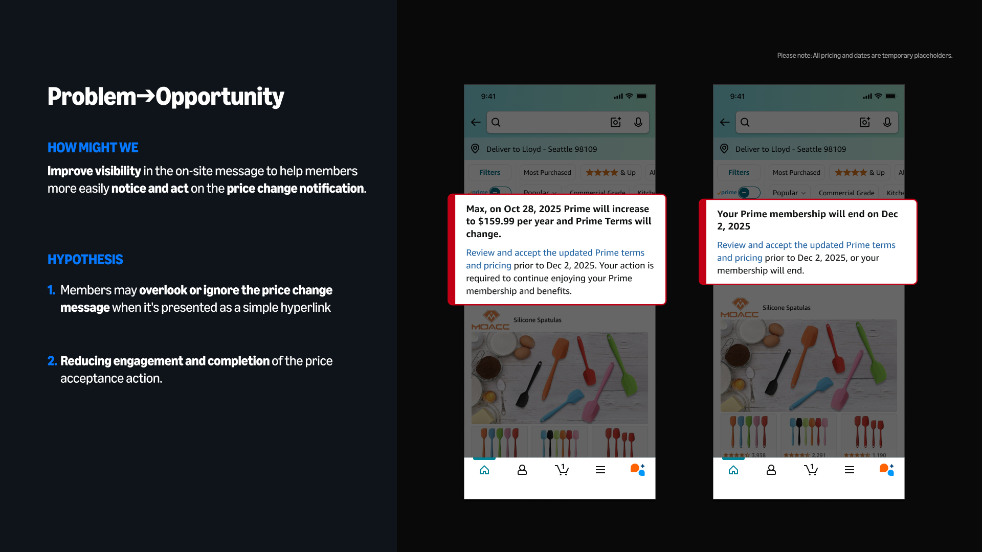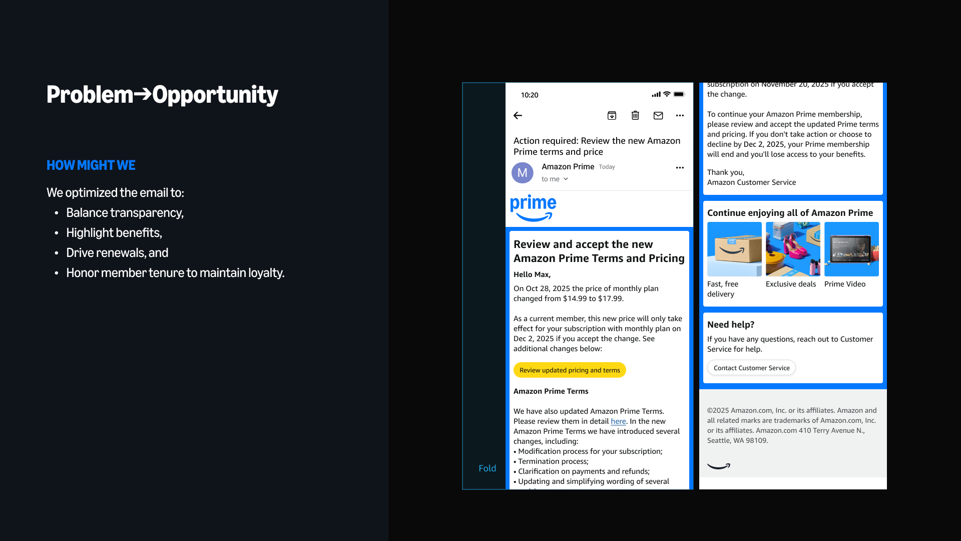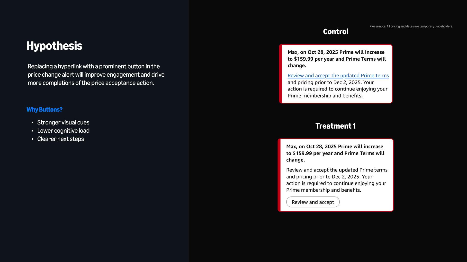 • We must find a context-appropriate tone that communicates the urgency of the action without alarming customers as to the state of their Prime membership