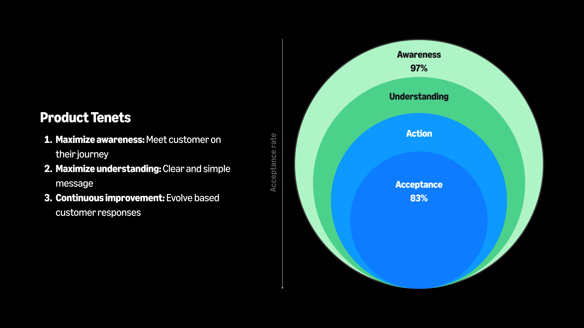 • We want to provide all the information to make a decision in a transparent, easy-to-digest way, providing the right details at the right stage of the journey (in other words, don’t front-load, but don’t withhold either).